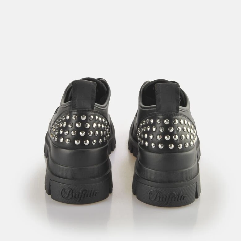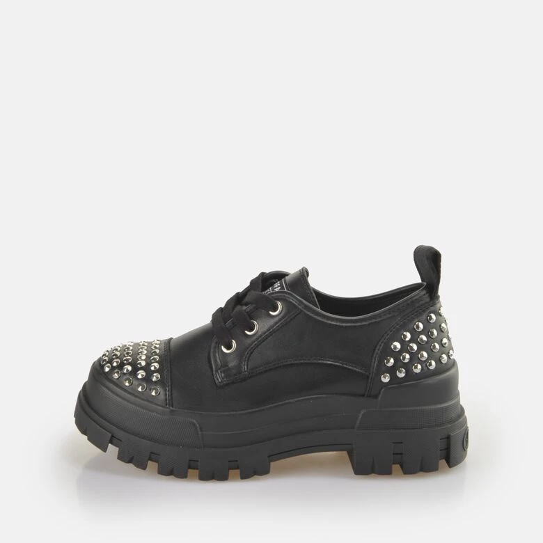 Ziehe mit dem chunky Aspha CLS Pin Halbschuh alle Blicke auf Dich! Der vegane Klassiker kommt in einem schwarzen Design mit stylischen Nieten auf der Front und an der Ferse. Bei diesem Loafer wird Eleganz mit punkigen Details zu einem einzigartigen Style kombiniert. Die herausnehmbare Decksohle aus Memory Foam sorgt für einen weichen Walk. Trag die stylischen Halbschuhe zu lässigen Wide-Leg-Jeans.