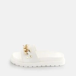 Läuft bei dir? Mit diesen trendy Sandalen kann den heißen Sommertagen nichts mehr im Weg stehen. Das neueste Upgrade deiner Sommergarderobe sind die Eve ChainBadelatschen, die einfach zu jedem Outfit passen. Diese Badelatschen kommen mit einer auffälligen Kette am vorderen Riemen, die jedes Outfit aufpeppen. So bequem und leicht, stell sicher, dass du sie für den nächsten Sommer auf jeden Fall in greifbarer Reichweite haben solltest!