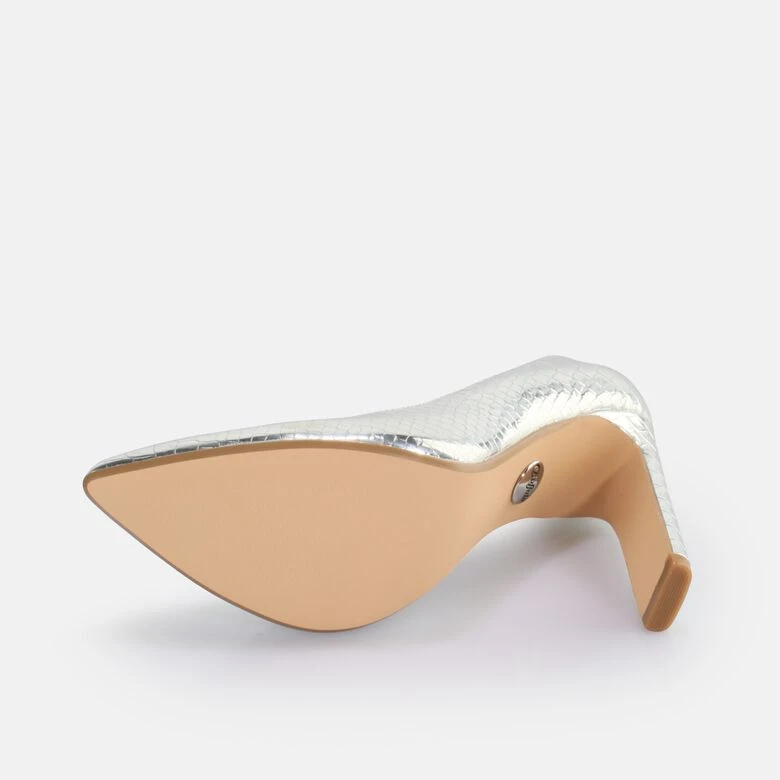 Kombiniere die veganen Jolie Pumps mit einem stilvollen Kleid und sichere Dir souverän das Spotlight auf jeder Party. Die shiny Oberfläche in Snake Silver verwandelt den Schuh in einen absoluten Eyecatcher. Ziehe alle Blicke auf Dich und präsentiere Deinen einzigartigen Look. Neben der angenehmen Leichtigkeit sorgt die Memory Foam-Sohle für einen hohen Tragekomfort.