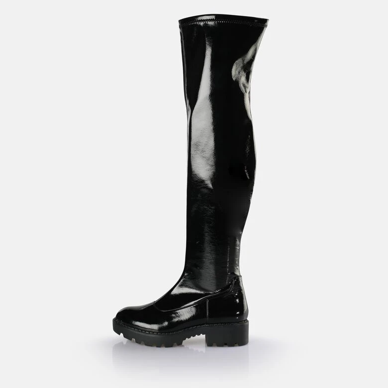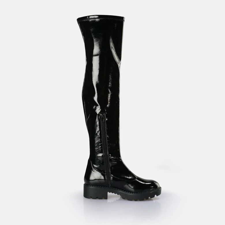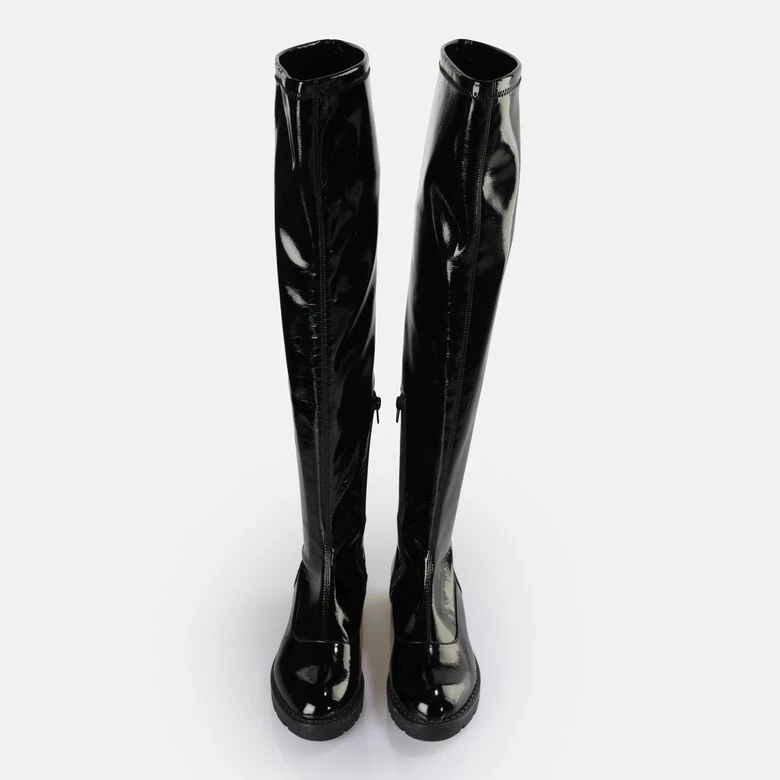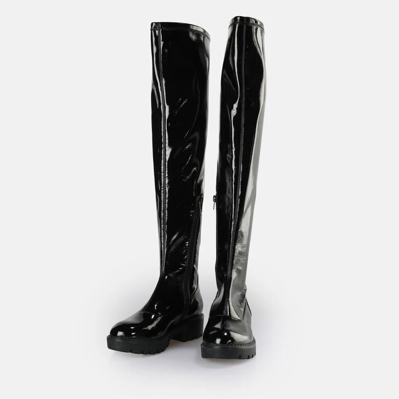 Mit dem schwarzen Myrna Overknee Boot verleihst Du Deinen Looks ein individuelles Highlight. Die Overknee-Länge wird mit einem 4 cm hohen Blockabsatz kombiniert, um für besonders lange Beine zu sorgen. Dank der Memory Foam-Sohle genießt Du dabei einen unvergleichlichen Tragekomfort. Kombiniere den veganen Overknee zu einem schicken Rock und einer Bluse für einen frechen Biker-Style.