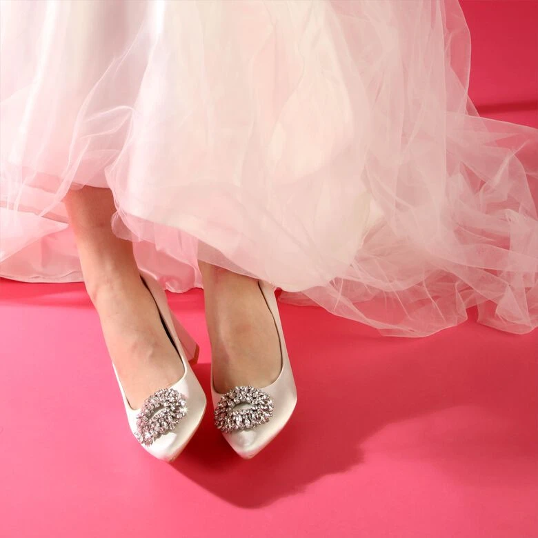 Sag Hallo zu der neuen Robyn Glam Sandalette! Der klassische Brautschuh kommt in einem eleganten Satin und ist ultraleicht. Mit dem modernen Blockabsatz und der Innensohle aus hochwertigem Leder ist er zudem äußerst bequem. Der eingearbeitete Memory Foam passt sich Deinen Füßen dabei perfekt an. Die Sandalette sorgt für ein funkelndes Highlight unter Deinem Brautkleid.