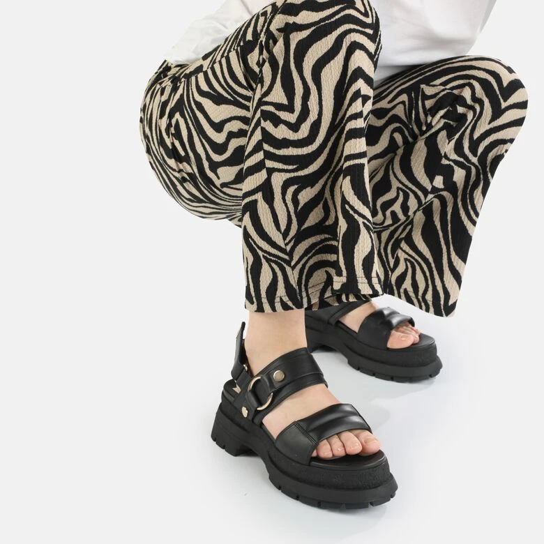 Ring frei für die Rude Ring Plateau-Sandale, mit der Du niemals mehr um Aufmerksamkeit ringen musst. Denn der gepolsterte Riemen sowie goldfarbene Details wie ein edgy Ring sorgen besonders bei rockigen Grunge-Looks dafür, dass Dir die Aufmerksamkeit nur so zufliegt.