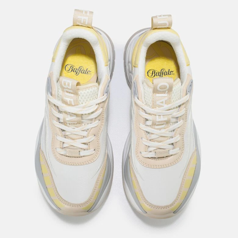 Der Triplet Third Sneaker überzeugt Dich auf den ersten Blick mit seinem trendstarken Tri-Color-Design in Beige, Weiß und Gelb. Hingucker ist die stark profilierte Gummi-Außensohle und die Overlays im Wellen-Design. Das Piece ist die perfekte Lösung für Fashionistas wie Dich, die auf Style und Komfort nicht verzichten wollen.